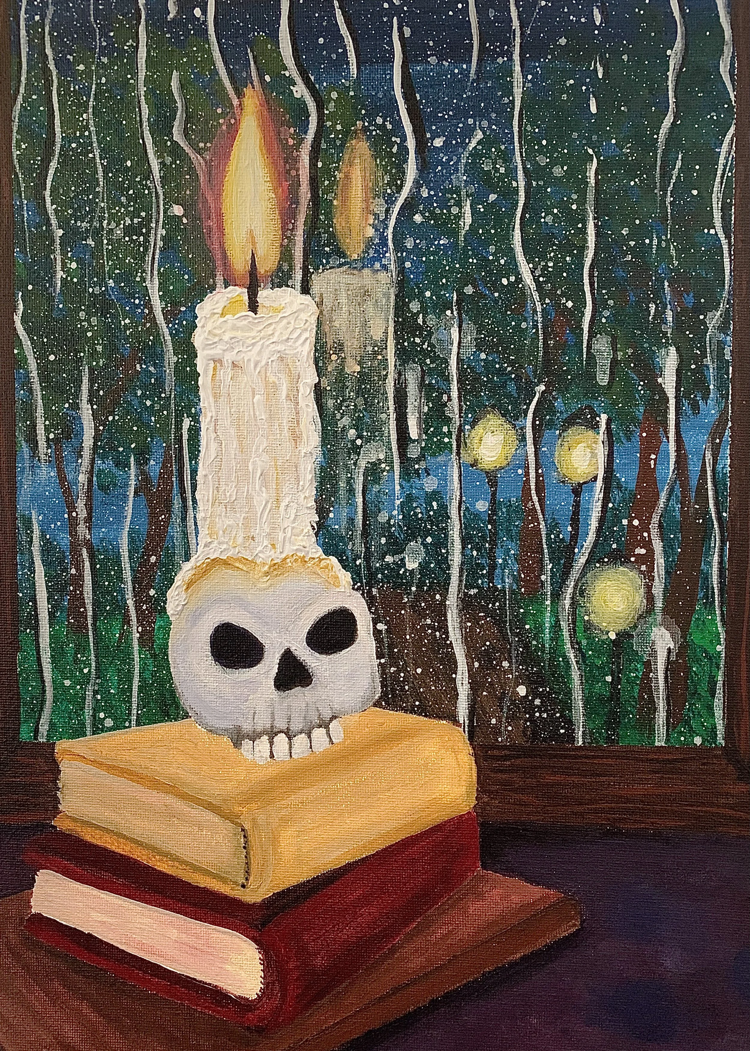 "Sabbath Candle" Acrylics on Canvas (8 inch circle)